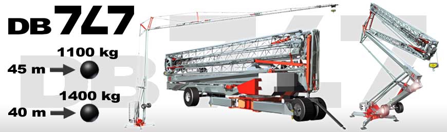 Ο DB 747 είναι ένας στιβαρός, τεχνολογικά προηγμένος και εξαιρετικά αξιόπιστος αυτοαναγειρόμενος γερανός πλήρους μεγέθους. Αποτελεί μια πραγματικά αυτόματη λύση, όπου η τοποθέτηση και η βαθμονόμηση πραγματοποιούνται γρήγορα και απλά, χάρη σε ειδικά ανεπτυγμένες τεχνικές λύσεις.